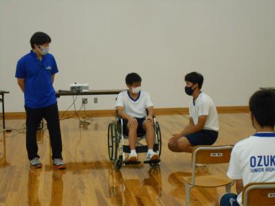 福祉体験を行いました。車椅子体験や介護、コミュニケーション、認知症、食事介助と自助具についてゲストティーチャーをお招きして学習しました。