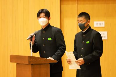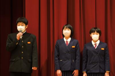 と声が上がり、2年生の生徒会執行部の3名が壇上へ上がりました。